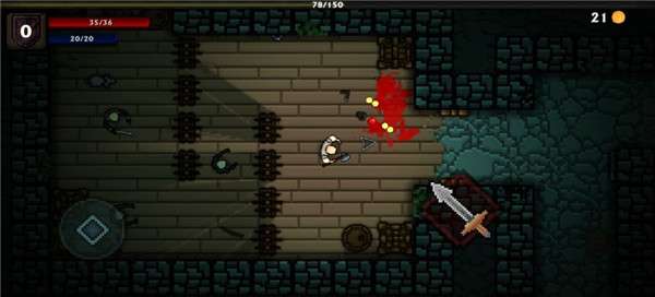 5、楼层越高,难度越大,墙壁会释放武器,怪物也会丢武器攻击,可能会中毒,玩家血量会减少,屏幕有一闪一闪的感觉。