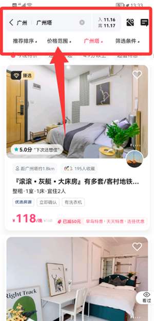 3、通过排序、定价和筛选标准,可以在结果页面上找到合适的民宿