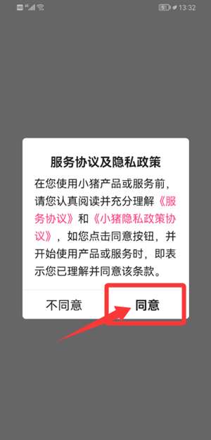 1、首先,点击同意按钮确认服务协议和隐私政策条款。