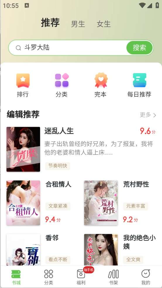 1、主页推荐:主页将显示热门小说和个性化推荐,用户可以直接点击阅读。