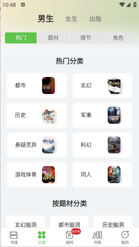 3、“类别”页面包含各种小说资源,包括浪漫、科幻和角色类型。