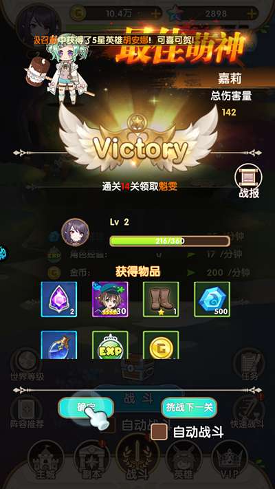 7、获得的奖励可以用来抽取新英雄来提升战斗力。