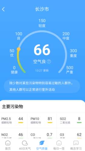 4、您还可以查看空气质量状况,这里的污染物数据也提供给每个人。