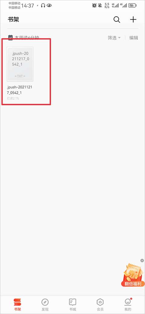 2、然后等待手机扫描,扫描完成后选择要导入的文件,然后单击“添加到书架”。