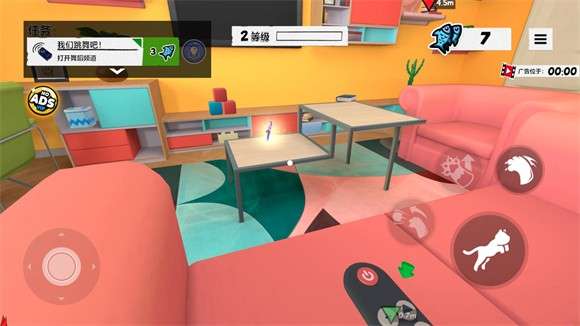 2、进入地图后左边控制猫咪的移动,右边控制猫咪的跳跃和互动。
