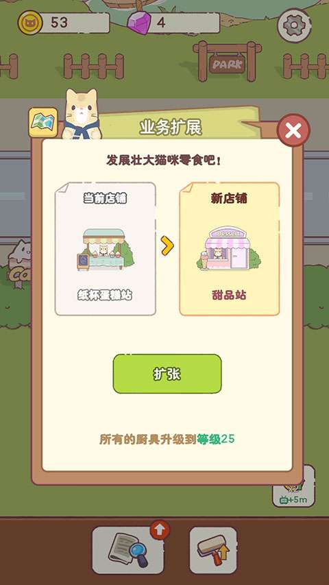 4、当营业规模达到一定程度时,即可解锁更高级的店铺。
