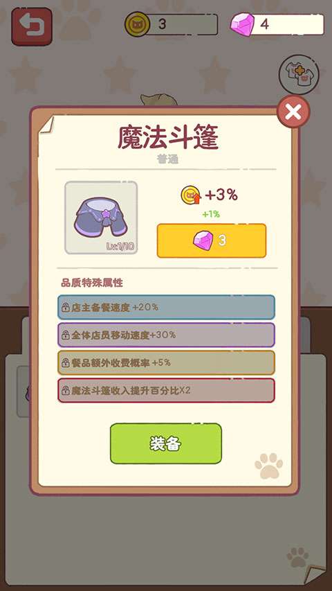 8、装备服装道具后的猫咪店员可以获得一定的属性提升。