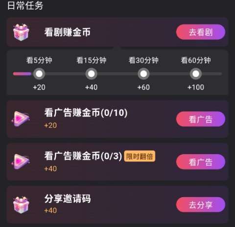 4、日常任务:每天0:00刷新任务进度和奖励。
