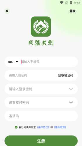 3、进入注册页面后,输入手机号,验证码,登录密码和支付密码。