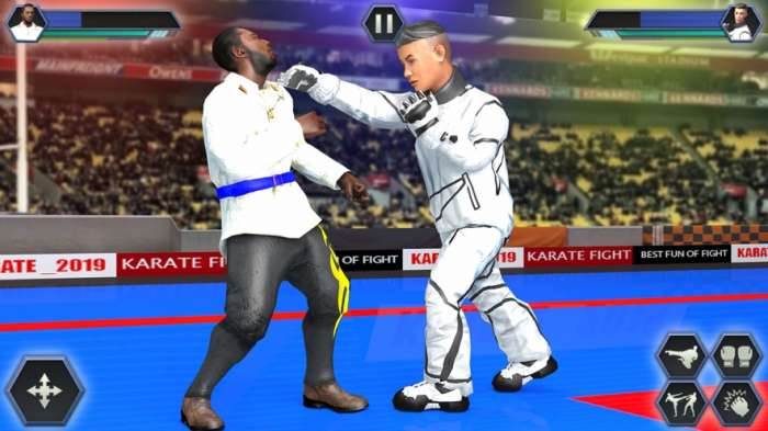 真正的空手道格斗2020这是一个格斗类的游戏,里面有一个经典的运动项目大家可以参与学习养成自己的角色开始进行比赛。学习更多的空手道技能,跟不同地区的玩家么开始PK每一次的动作点击右侧的动作按钮就可以了。游戏中也有不同等级的角色形象可以更换,还有很多是名人的皮肤,亚洲人,欧美人都有。很具不同的额等级更换不同的道服,对战是回合的挑战每一次遇到的对手都不同。
