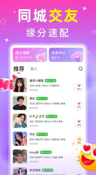 1、智能推荐:根据兴趣和习惯智能推荐可能喜欢的异性网友,快速找到心动的人。