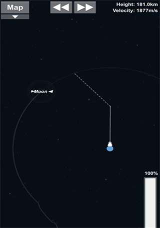 4、然后打开地图观看火箭的轨迹有没有接近月球的轨道,然后把用完的四个氮气桶脱离。