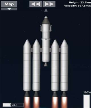 3、起飞的时候需要五个染料一起点燃,中间的染料会先用完,用完后丢掉可以降低火箭的重量。