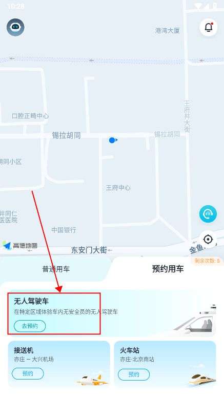 4、在软件中发布您的出发地和目的地,系统会自动调用自动驾驶汽车。