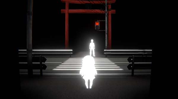 4、掉下去后,通过楼梯,往上走,能看到一个发光的男人站在墓碑前,走到男人的位置离开墓地(往左边走能看到)。