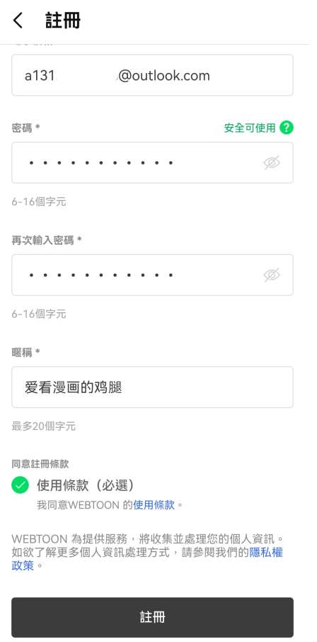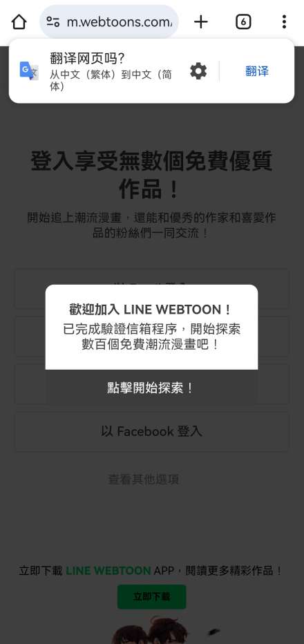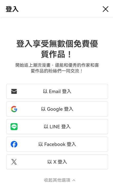 7、返回到Webtoon软件进行登录,输入邮箱和密码,点击【登入】。