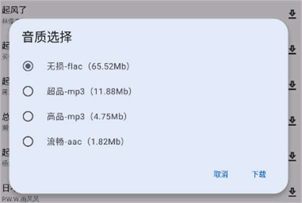 2、多音质格式选择:下载歌曲时,提供多种音质格式供用户挑选,满足不同听觉享受。