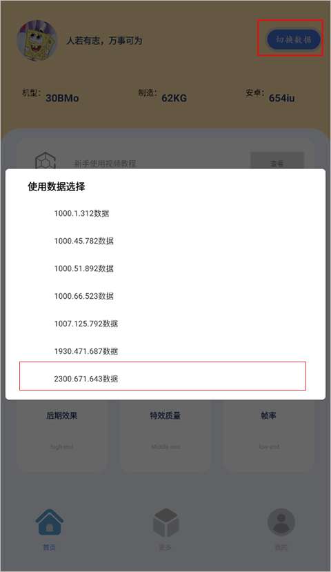 1、在首页点击右上角的“切换数据”选择最下方的那个。