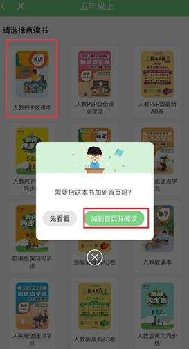 3、选择你要添加的点读书,然后点击加到首页并阅读即可添加完成。
