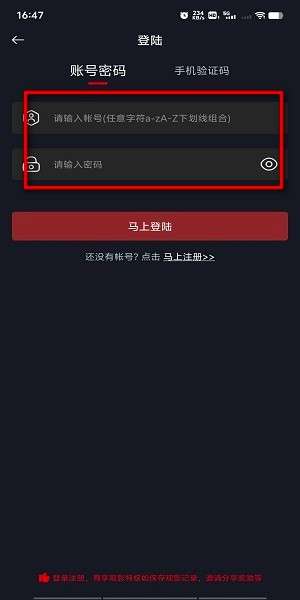 4、如果是新用户,就点击“马上注册”,输入账号和密码,完成注册。