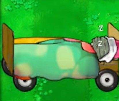 3、床车僵尸:速度快,免疫减速与冻结,佩戴帽子,血量500(帽子)+270(本体)。