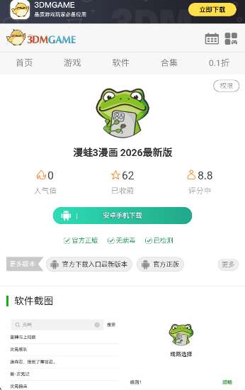 1、在当前页面下载漫蛙3漫画2026最新版安装包。