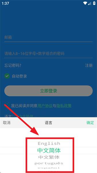 1、下载安装并打开SeTracker app,点击左下角语言。