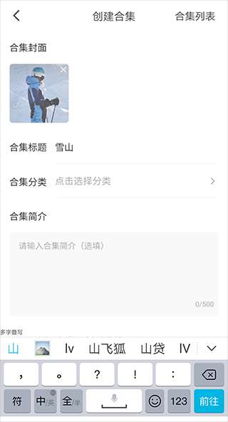 2、然后在打开的新页面中将相关参数填写完整创建一个合集。
