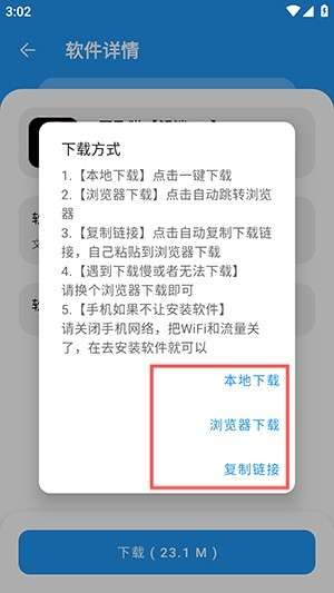 5、支持三种下载方式,本地下载,浏览器下载以及复制链接下载。