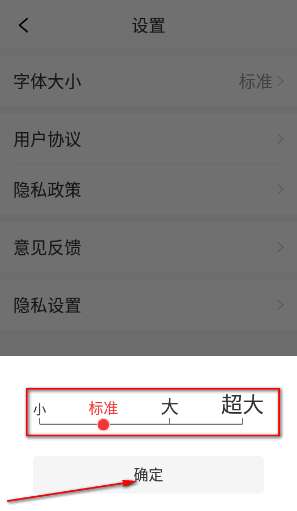 2、在设置的页面最上方的字体大小处,点击箭头,如下图所示。
