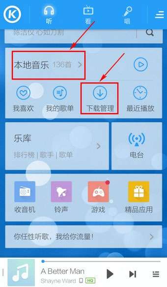 1、在本地音乐或下载管理中查找下载的歌曲。