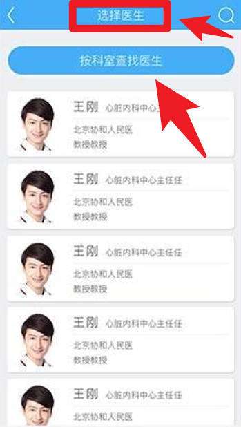 3、在医生选择页面,您可以通过搜索或筛选科室,快速找到您的目标医生。单击头像,查看并输入详细信息。