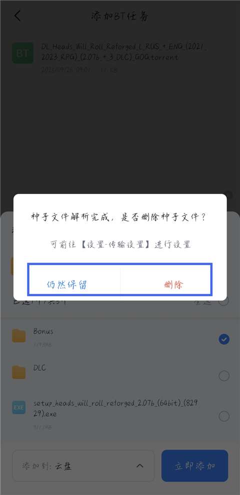 6、选择种子存储位置,然后单击“立即添加”。