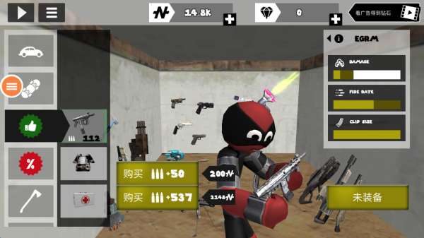 3、在武器库中,你可以购买多种武器枪支以及子弹,为你的角色打造更多战斗可能性。