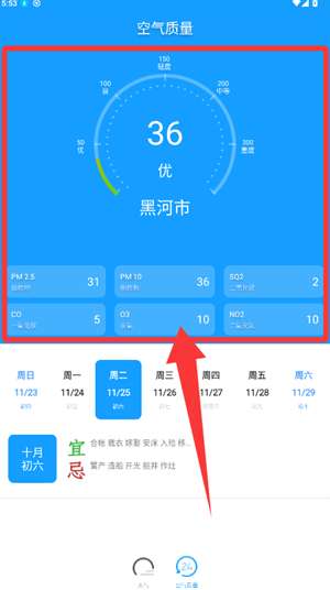 3、切换到空气质量部分,查看各种污染物的具体值。