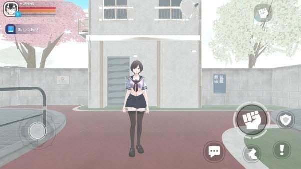 5、到达学校后,屏幕右下角会显示各种动作指令,包括拳击、疾跑、防御等,战斗时可灵活使用。