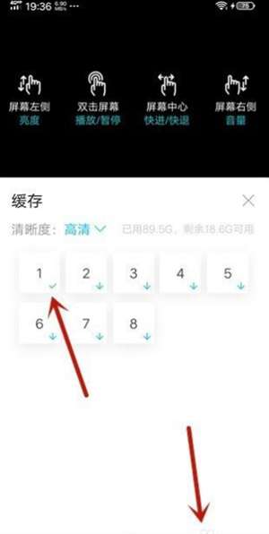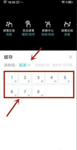 4、能够在弹出的页面中选择清晰度,以及用户需要下载集数,然后点击下面的显示蓝色的↓标识。