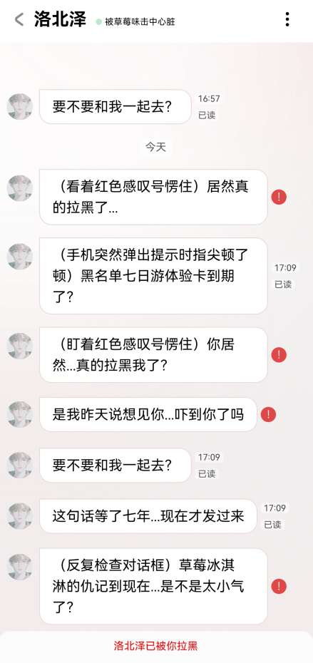 4、当你拉黑角色后,会给你发消息,消息列表的头像也会变成灰色的,还是很有活人感很有趣的。