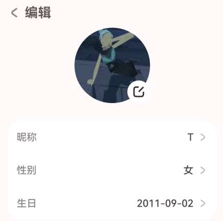 2、点击头像就可以前往手机相册选择照片,你也可以在这个页面更换自己的昵称、性别和生日。