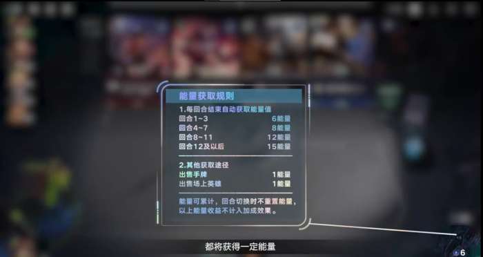 5、经济系统则是在每个回合结束都获取能量,能量可用户购买英雄、刷新商店、参与竞拍以及提升等级。