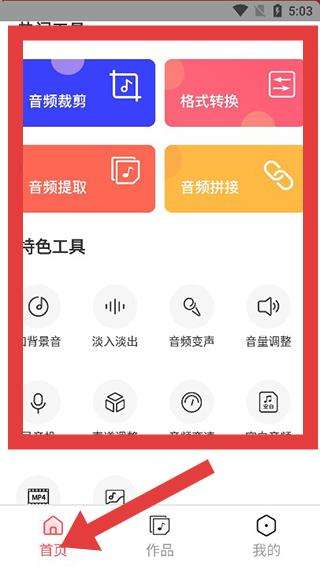 1、文字语音转换助手软件首页上方展示音频裁剪、格式转换等功能模块,还有特色工具区,涵盖加背景音乐等多种工具,方便用户进行音频处理操作。