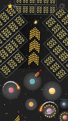 3、有的星球航道上还有星星可以收集但是会有一个导弹会一直在周边旋转寻找着攻击的目标。