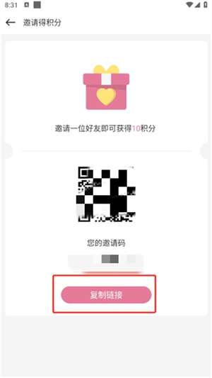 3、找到自己的邀请码,然后复制发送链接给朋友即可