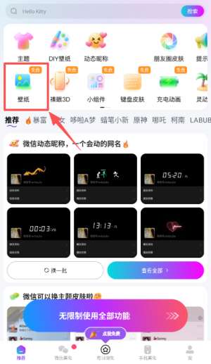 2、进入主界面后,找到壁纸选项,点击进入资源显示页面。