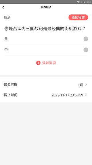5、添加图片、视频、投票也是可选项,这里以投票为例,点击最下方第三个图标添加投票。