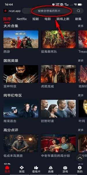 1、打开网飞猫后,找到要看的影视剧,可以在“首页”顶部进行搜索。