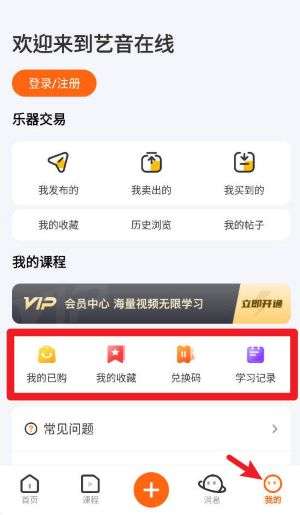4、点击底部“我的”进入个人中心,管理已购课程与学习记录,也可进行乐器交易与历史浏览。
