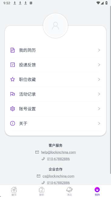 3、活动报名 可以通过活动中心访问所有求职招聘活动,选择并参加感兴趣的活动。