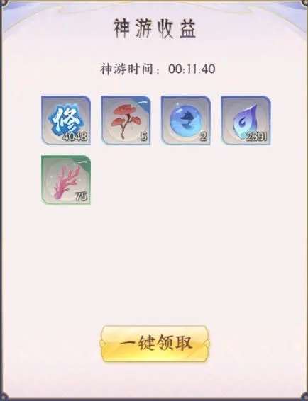 神游太虚挂机可直接获取修为,神游太虚等级越高,单位时间内产出的修为越多。