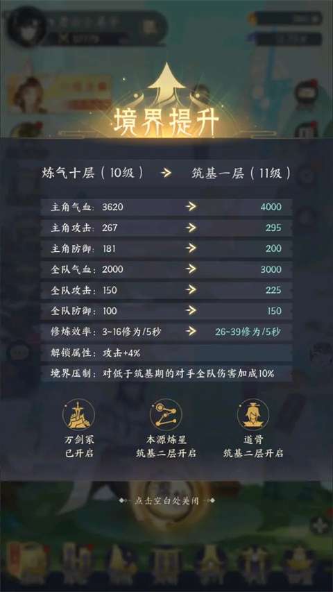 间接获取修为(提升修为增长效率):激活灵泉、万剑冢通关特定层数通灵窍、学习特殊功法、购买月卡